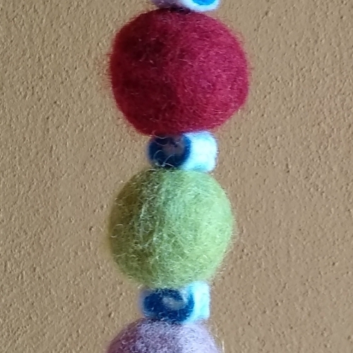 Durante el taller y a través de la técnica de fieltro húmedo realizarás bolas y rastas con dibujos interiores, para crear a tu gusto complementos de bisutería o móviles decorativos colgantes.